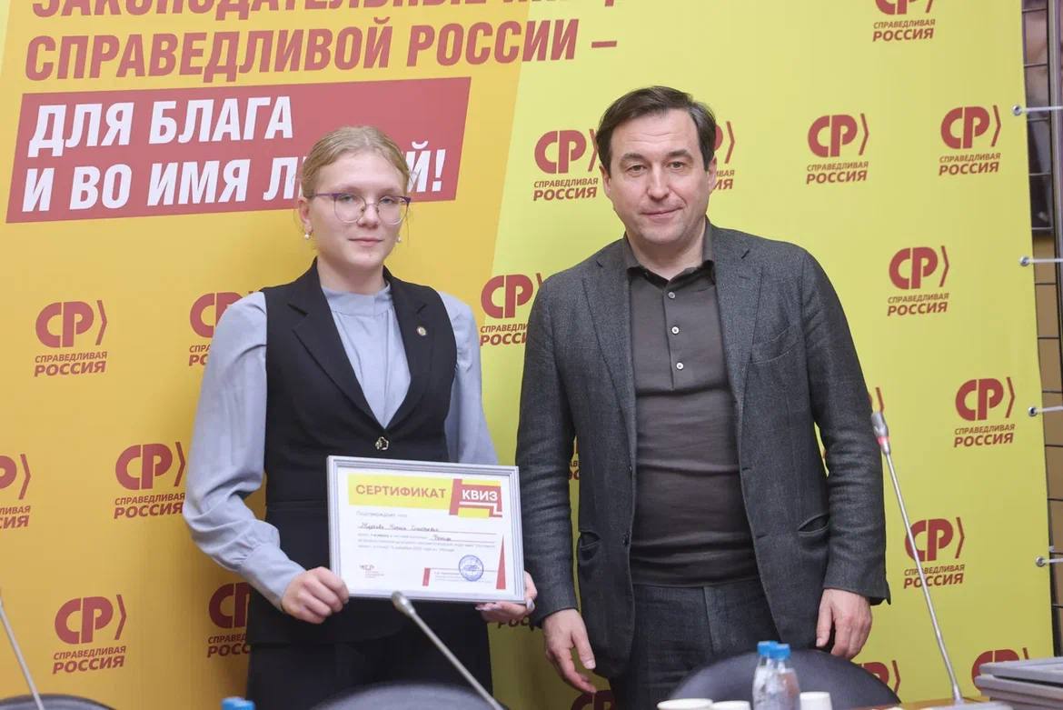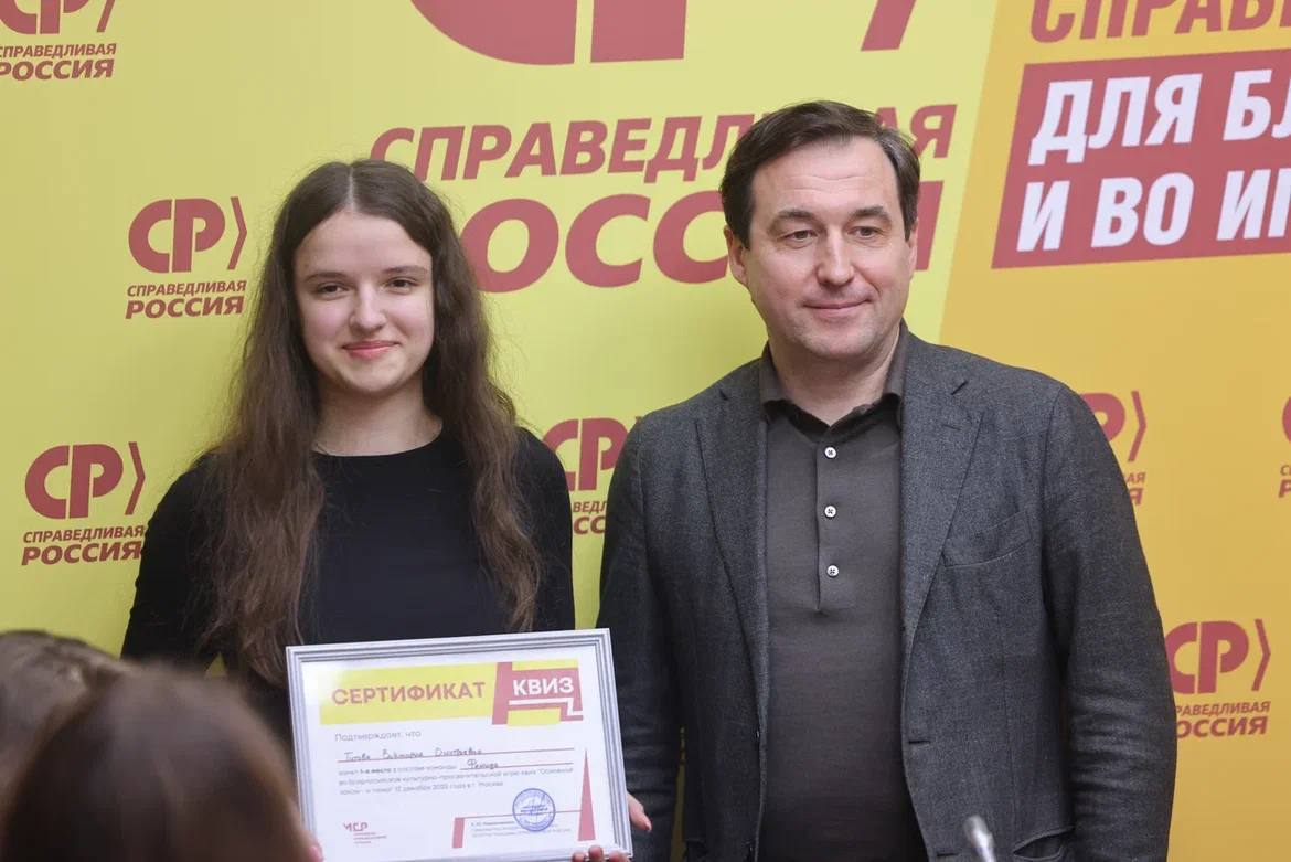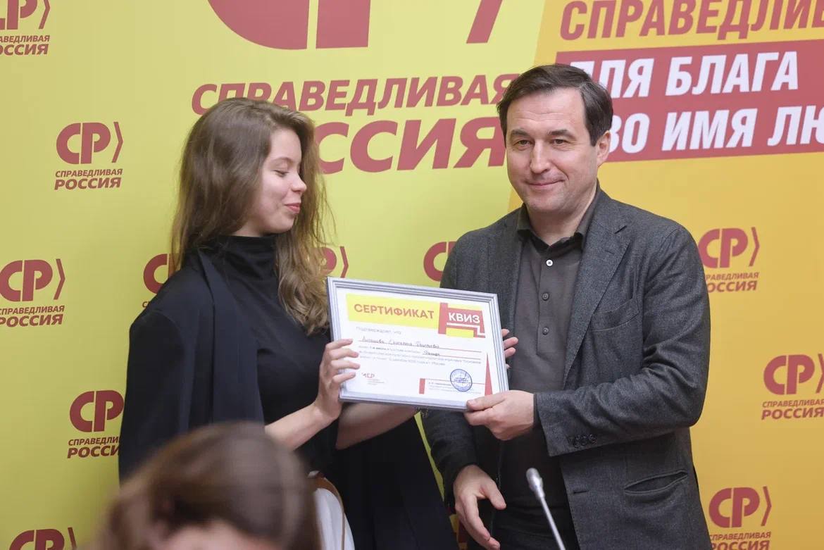 По итогам квиза победу одержала команда "Фемида". Награды вручал лидер московских эсеров Дмитрий Гусев. Он поблагодарил студентов за активность и рассказал о своём пути в политику, а также о приоритетных законодательных инициативах фракции.