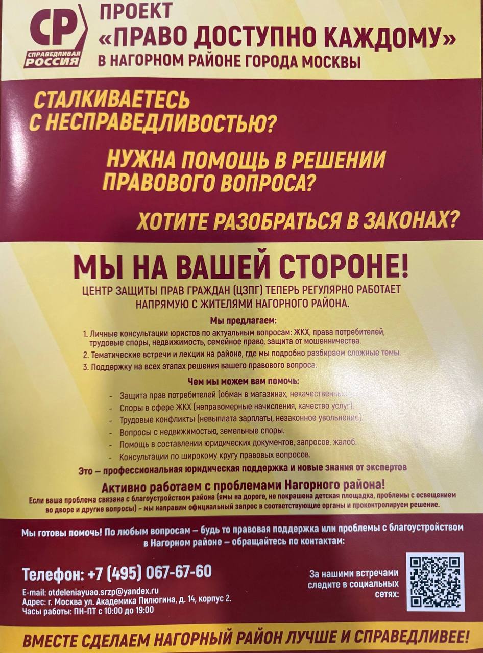 В Нагорном районе Москвы стартует партийный проект "Право доступно каждому".