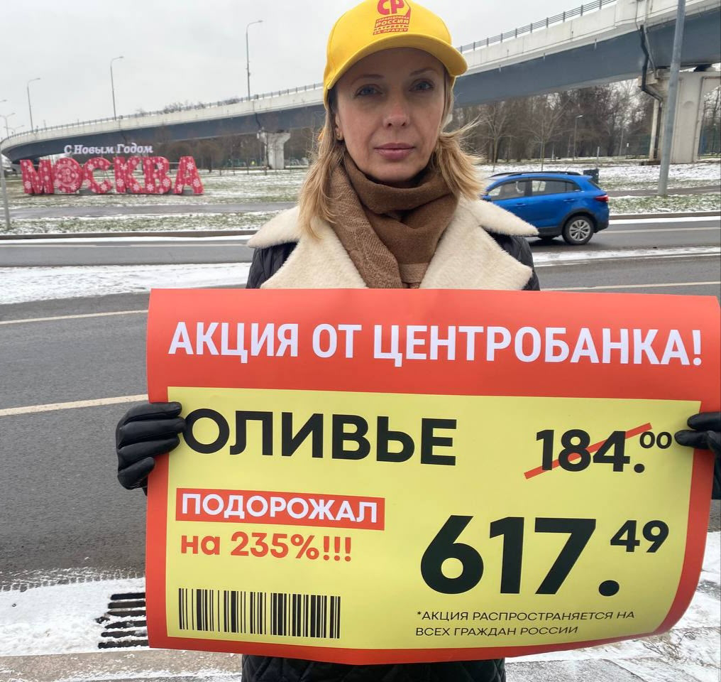 " в ТиНАО провели одиночный пикет, чтобы привлечь внимание к росту цен на продукты к Новому году.